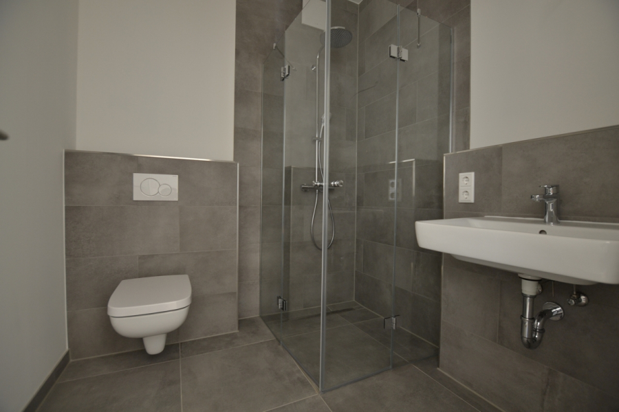 - modernes Badezimmer mit bodengleicher Dusche und Badewanne
