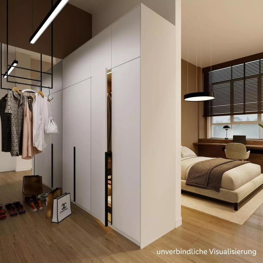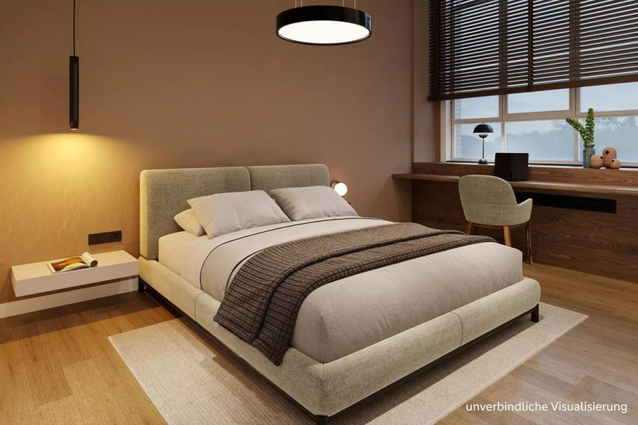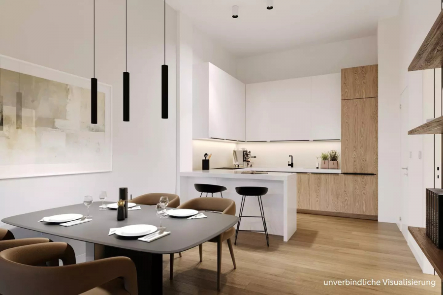 Großzügige Raumhöhen und weitläufige Fensterflächen prägen das typische Loft-Gefühl und schaffen lichtdurchflutete Wohnräume mit einzigartigem Charakter. Hochwertiges Parkett in den Wohn- und Küchenbereichen sowie elegante Feinsteinzeugfliesen in den Bädern unterstreichen den stilvollen Anspruch des Projekts. Ausgestattet mit modernen Sanitärobjekten von Villeroy & Boch bieten die Bäder ein gehobenes Wohlfühlambiente.