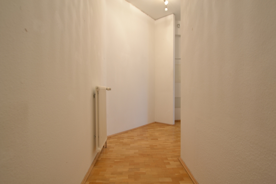 Der im Schlafzimmer vorhandene textile Belag wurde bereits gegen einen Laminatboden in Holzoptik ausgetauscht.