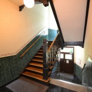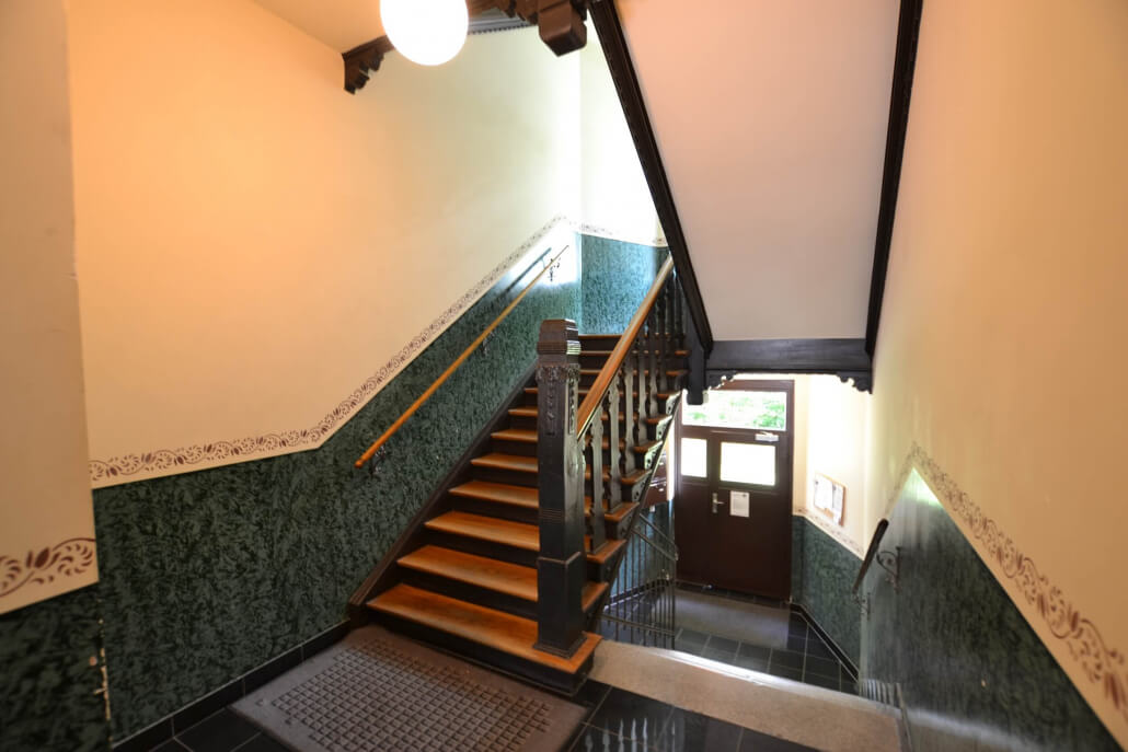 Das repräsentative Treppenhaus führt zu jeweils zwei großzügigen Wohnungen pro Etage, die mit hohen Stuckdecken, Altbau-Türen und einem Tageslichtbad mit Badewanne ausgestattet sind. Die Wohnräume verfügen über Laminatböden, während Bad und Küche gefliest sind. Von der Küche aus gelangt man auf einen großen Balkon, der zum ruhigen und grünen Innenhof ausgerichtet ist und zur gemeinschaftlichen Nutzung einlädt. Ein Kellerraum sir der Wohnung zugeordnet.