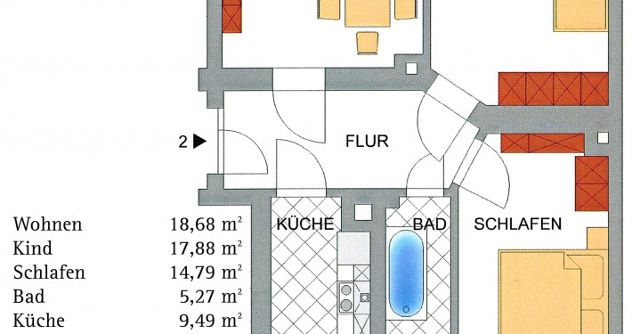 • Wohnung ist seit April 2000 vermietet; mtl.: 399,32 €; 4.791,84 €/p.a.