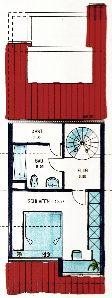 - Tageslichtbad mit Wanne in der oberen Ebene